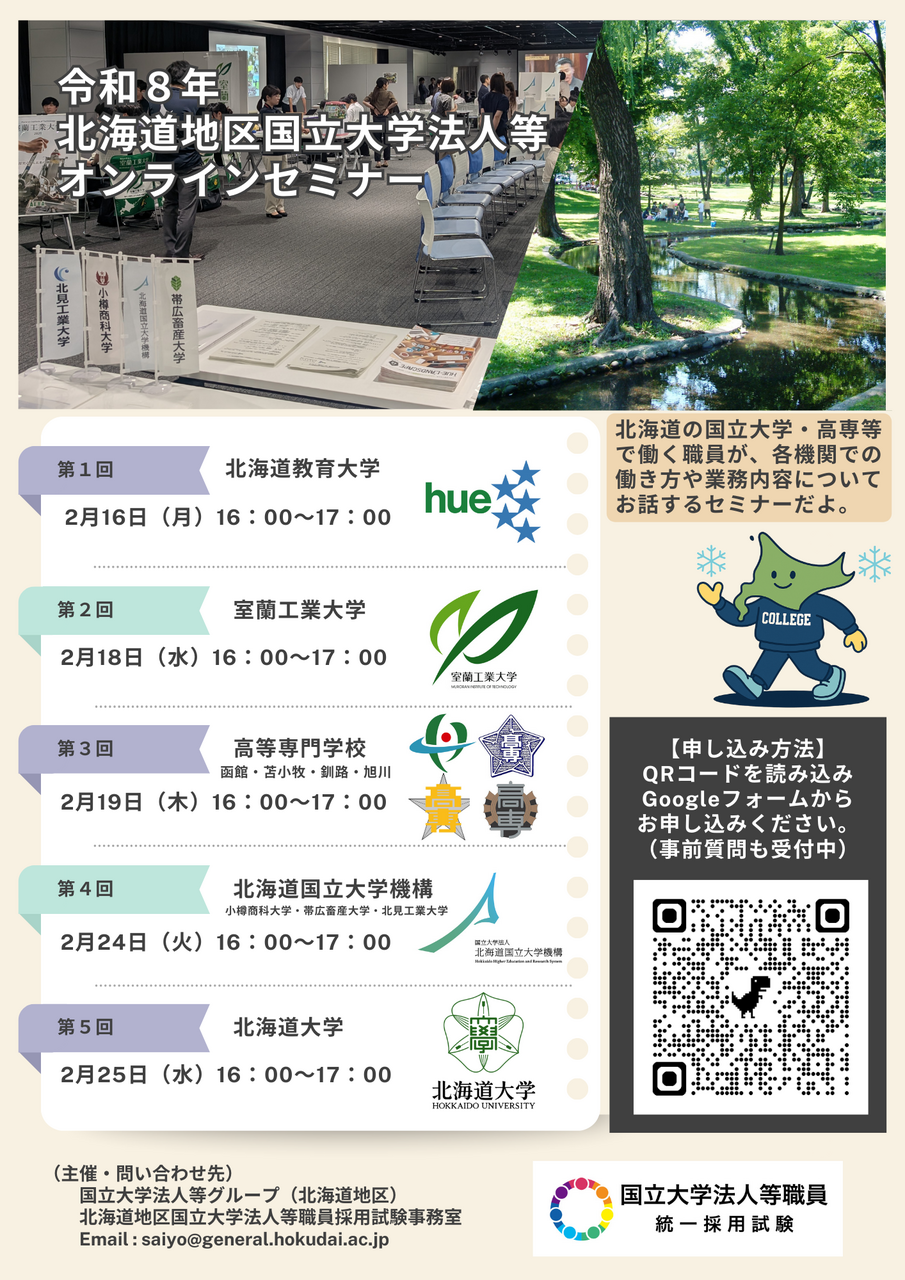 【第1回 北海道教育大学】令和8年北海道地区国立大学法人等オンラインセミナーの概要