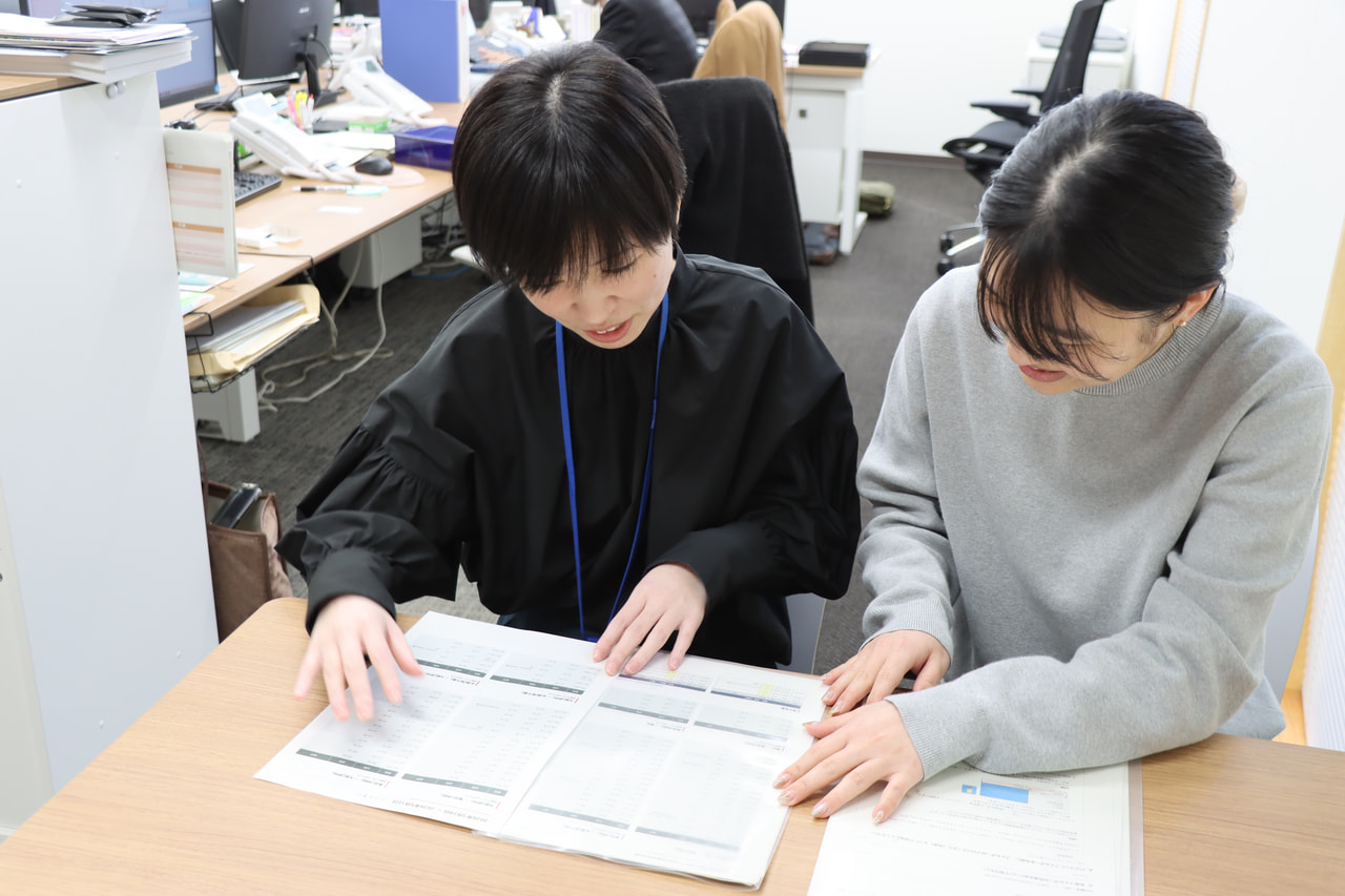 みなさんの中には、学生支援や教務の事務職員が「大学職員」というイメージを持つ方がいるかもしれませんが、実際にはそれ以外の部署がたくさんあり、教員の研究支援や法人運営などの業務に関わる場合もあります。それぞれの部署間で業務上のやりとりがあり、また、比較的同世代の職員が多いので、他部署の担当業務について確認したいことがあれば業務用チャットを通じて、同期や先輩・後輩に気軽に相談することができます。後輩の面倒をよく見てくれる話しやすい若手職員が多いので、自然とコミュニケーションが取れる点は、心強いと感じています。